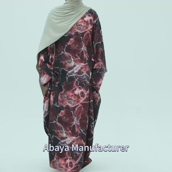 Tabara Ink Wash Abaya – Modest Islamic Dress with Elegant Print